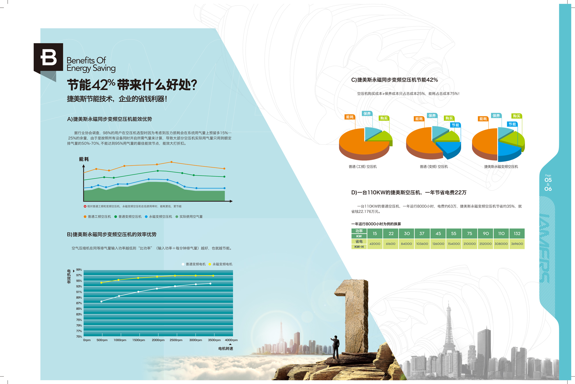 省 电:比普通工频空压机节能42%以上